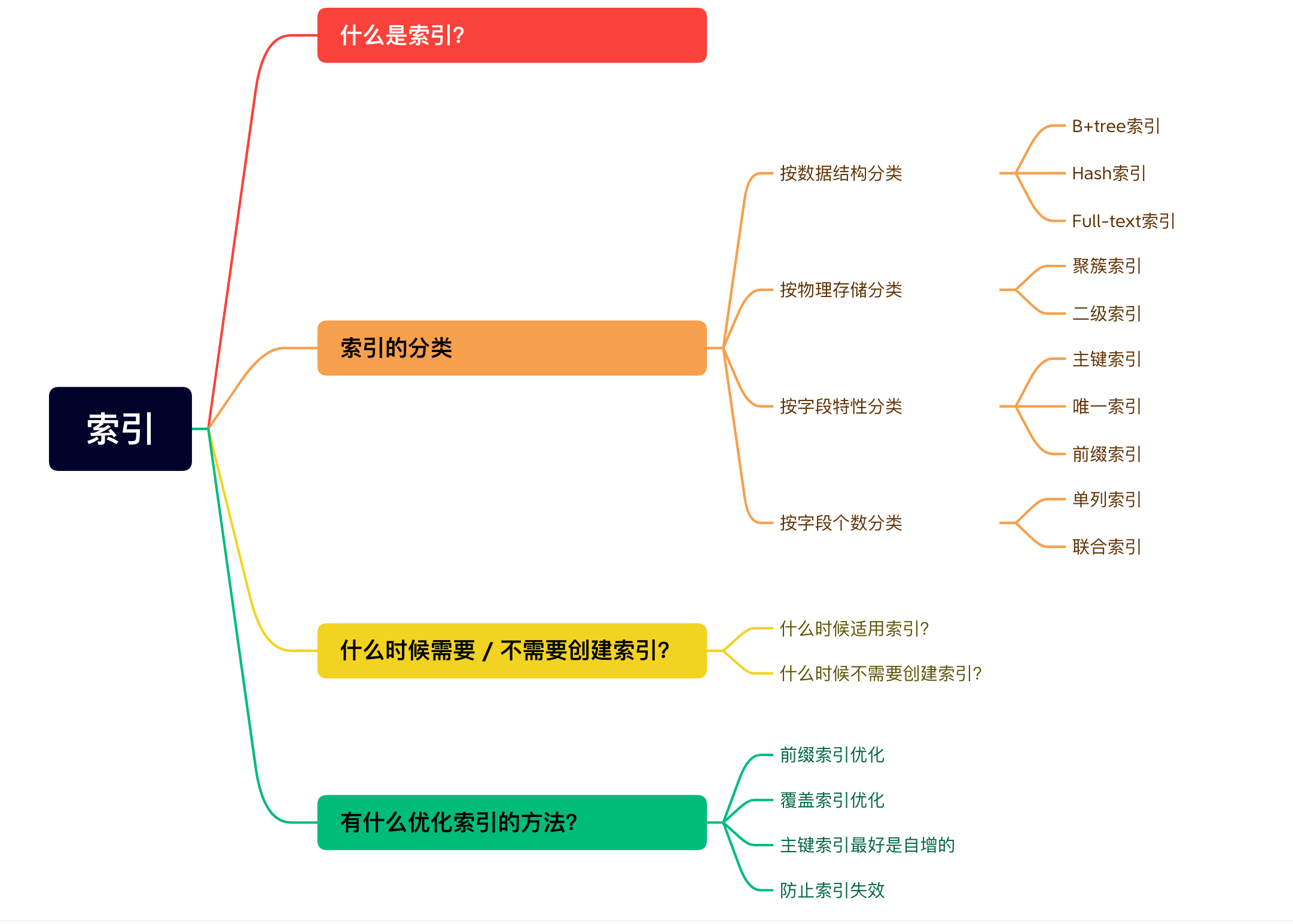 然后再问你,你能将这些索引分一下类吗?可能大家就有点模糊了。其实,要对这些索引进行分类,要清楚这些索引的使用和实现方式,然后再针对有相同特点的索引归为一类。