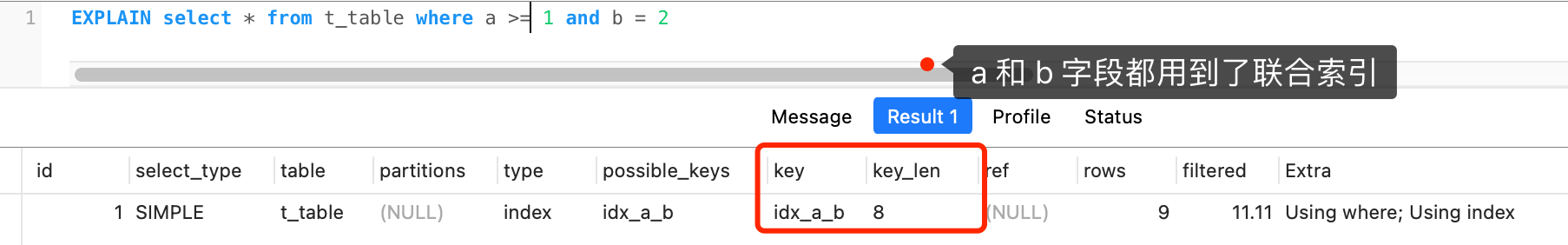我上面说的是常见的索引失效场景,实际过程中,可能会出现其他的索引失效场景,这时我们就需要查看执行计划,通过执行计划显示的数据判断查询语句是否使用了索引。
