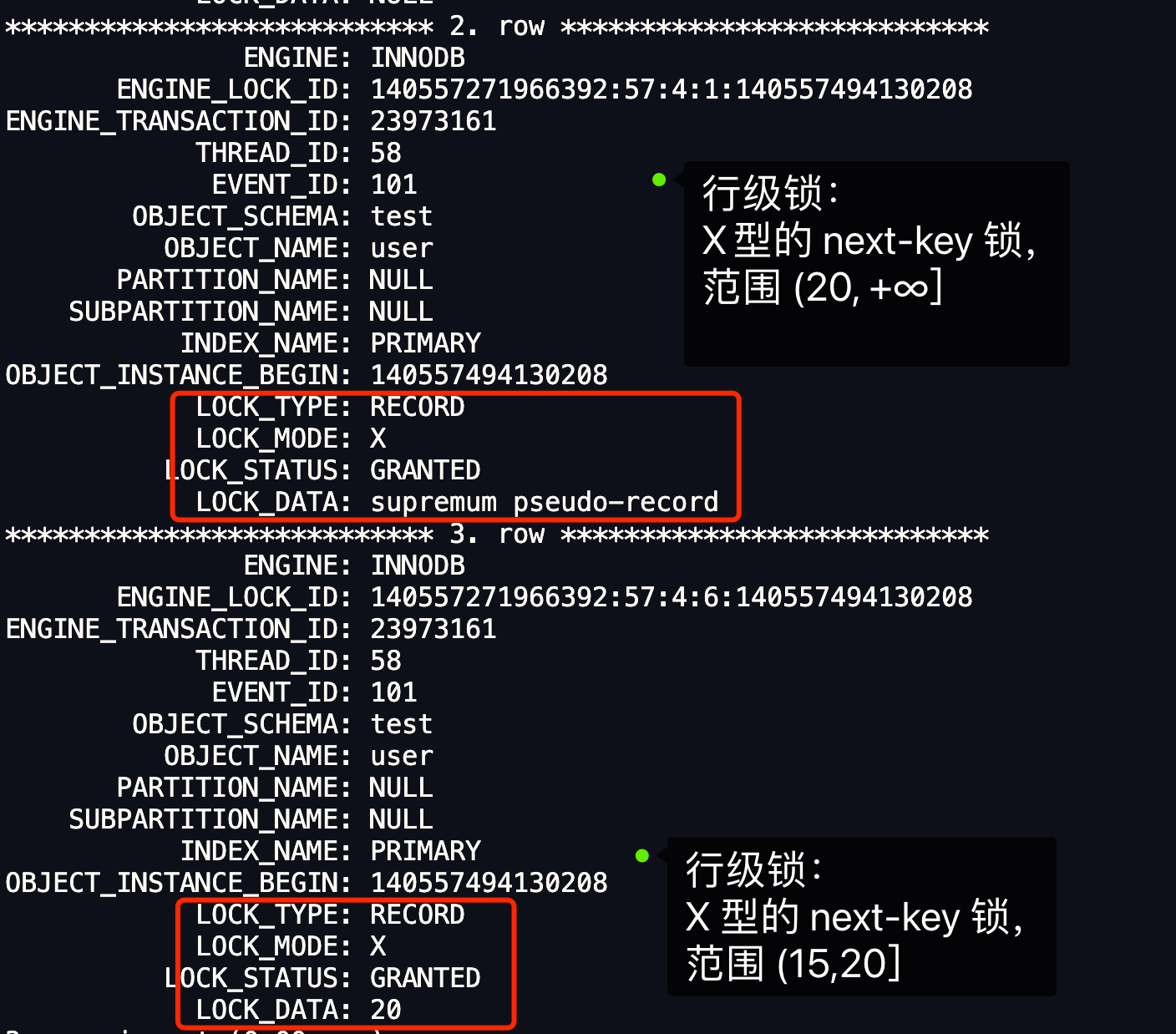 X,说明是 next-key 锁; - 如果 LOCK_MODE 为