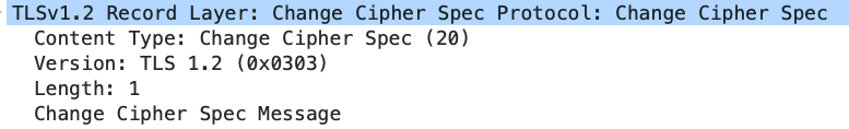 算好会话密钥后,客户端会发一个「Change Cipher Spec」消息,告诉服务端后续改用对称算法加密通信。