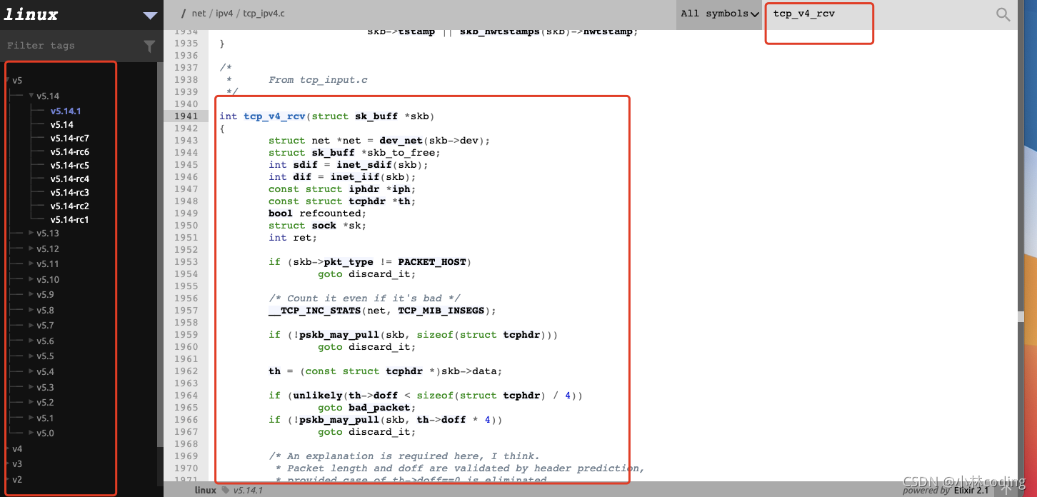 所以,我看 TCP 源码的经验就是,先在网上找找前辈写的 TCP 源码分析,然后知道整个函数的调用链路后,如果想具体了解某个函数的具体实现,可以在我说的那个看 Linux 内核代码的在线网站上搜索该函数,就可以看到完整的函数的实现。如果中途遇到看不懂的代码,也可以将这个代码复制到百度或者谷歌搜索,一般也能找到别人分析的过程。