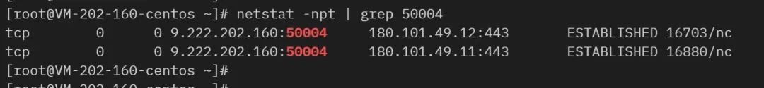 仔细看,上面这两条 TCP 连接的四元组信息中的「目的 IP 地址」是不同的,一个是 180.101.49.12,另外一个是 180.101.49.11。