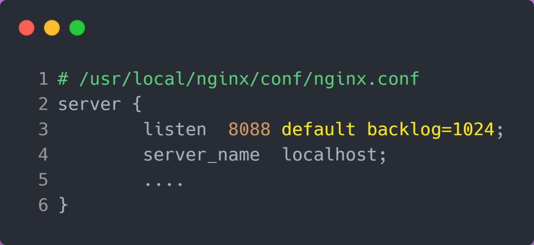 增大 backlog 的方式,每个 Web 服务都不同,比如 Nginx 增大 backlog 的方法如下: