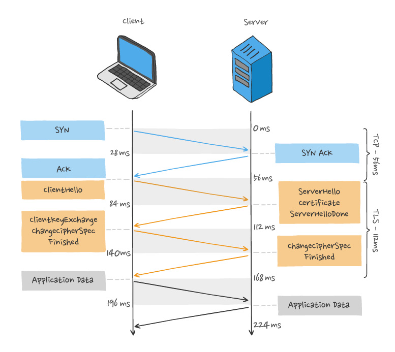 还有一点,针对 HTTPS 来说,TLS 是在应用层实现的握手,而 TCP 是在内核实现的握手,这两个握手过程是无法结合在一起的,总是得先完成 TCP 握手,才能进行 TLS 握手。