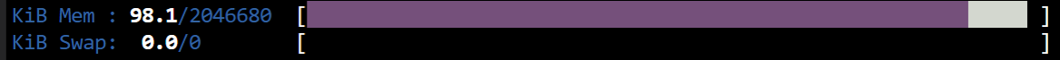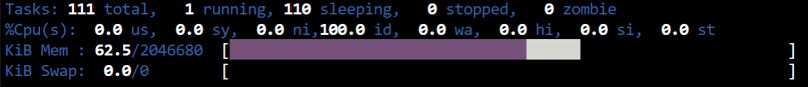 可以使用 top 命令,点击两下 m,通过进度条观察物理内存使用情况。