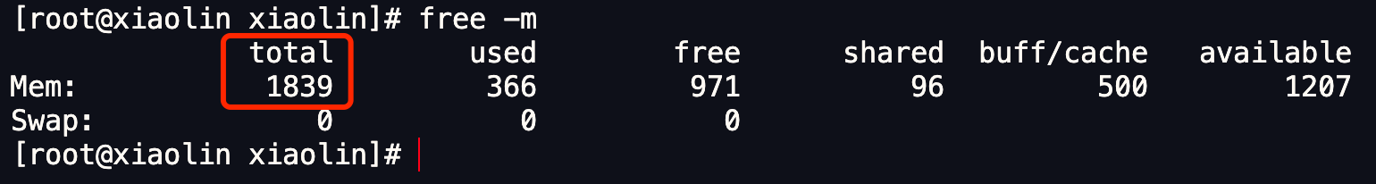 我的服务器是 64 位操作系统,但是物理内存只有 2 GB,而且没有 Swap 分区: