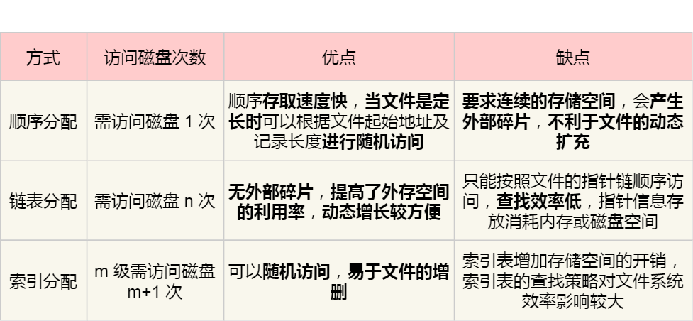 其中,非连续空间存放方式又可以分为「链表方式」和「索引方式」。